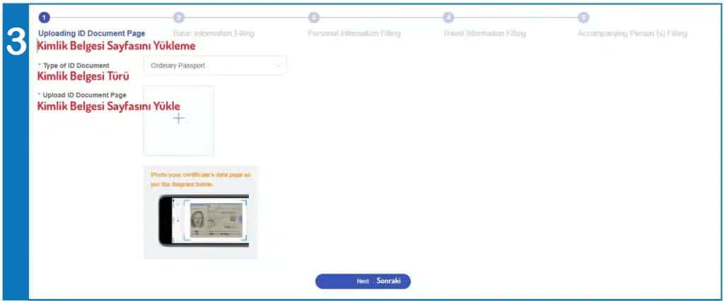 Bu ekranda pasaportunuzun net bir kopyasını yükleniz gereklidir.