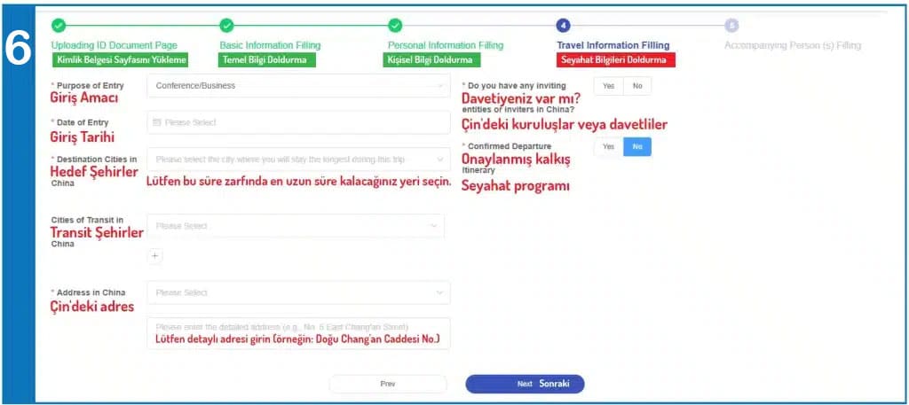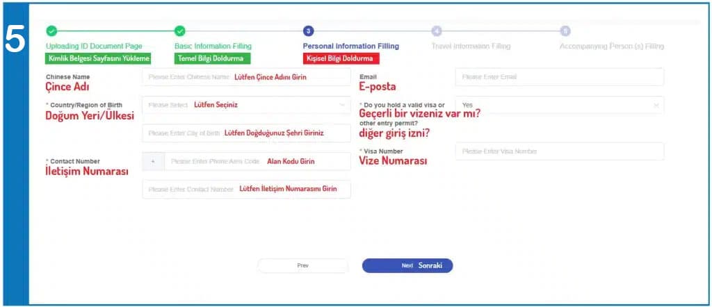 Yolcu dilerse formu yolculuk öncesi doldurabilir veya Çin’e inişten sonra havalimanındaki internetle doldurabilir.