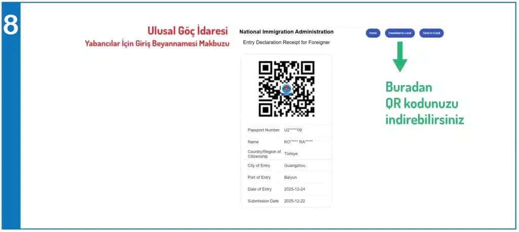 Form tamamlandığında yolcuya bir QR kod verilir ve pasaport kontrolünde bu kod talep edilebilir.